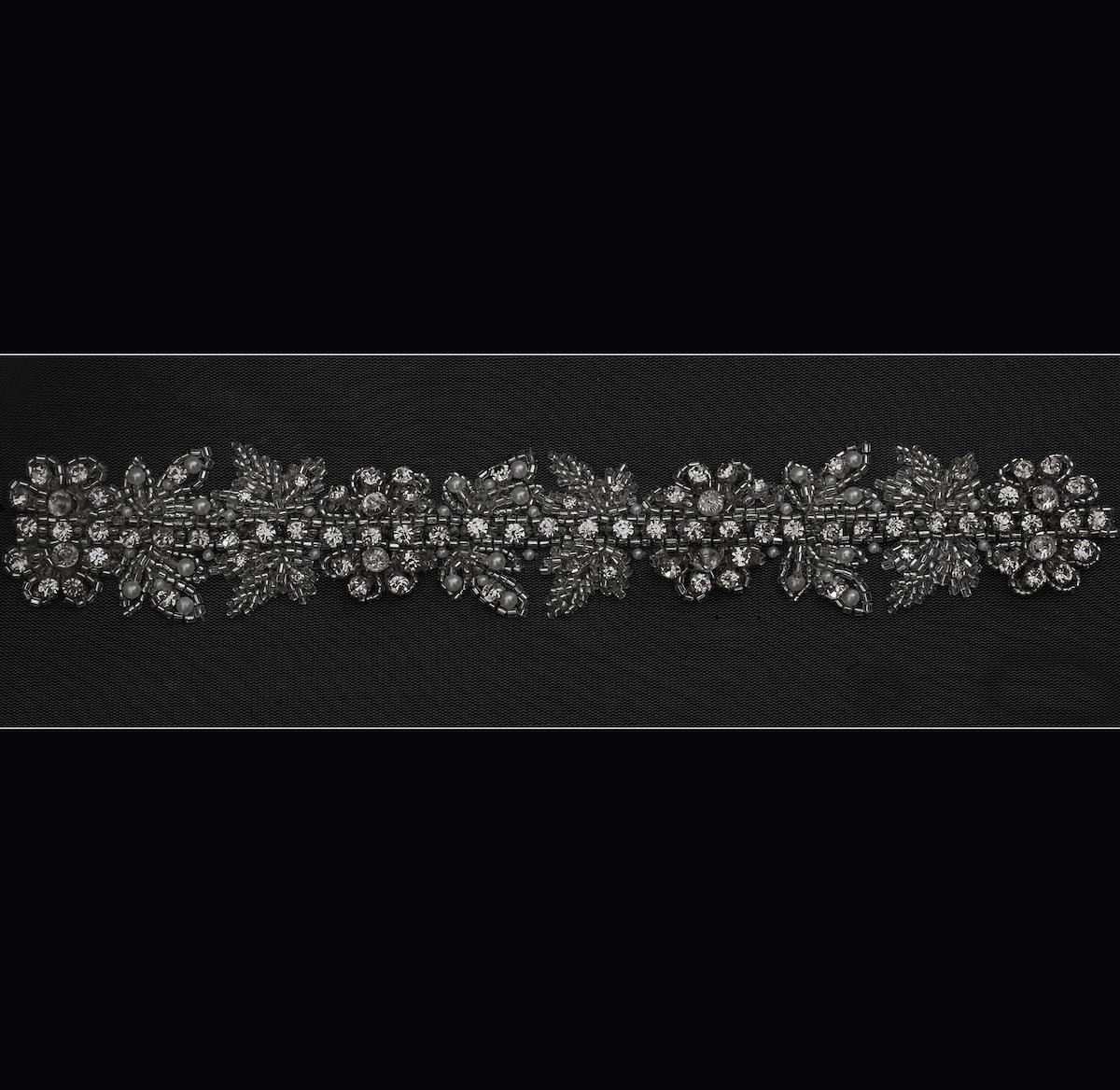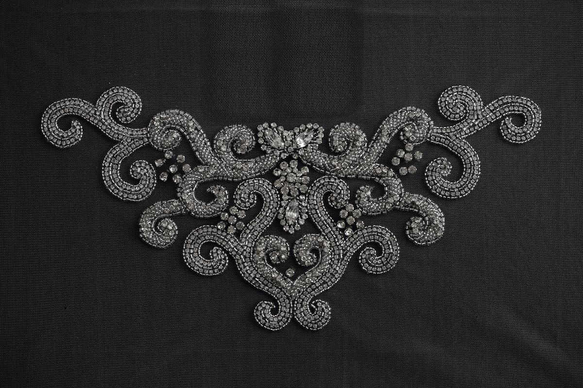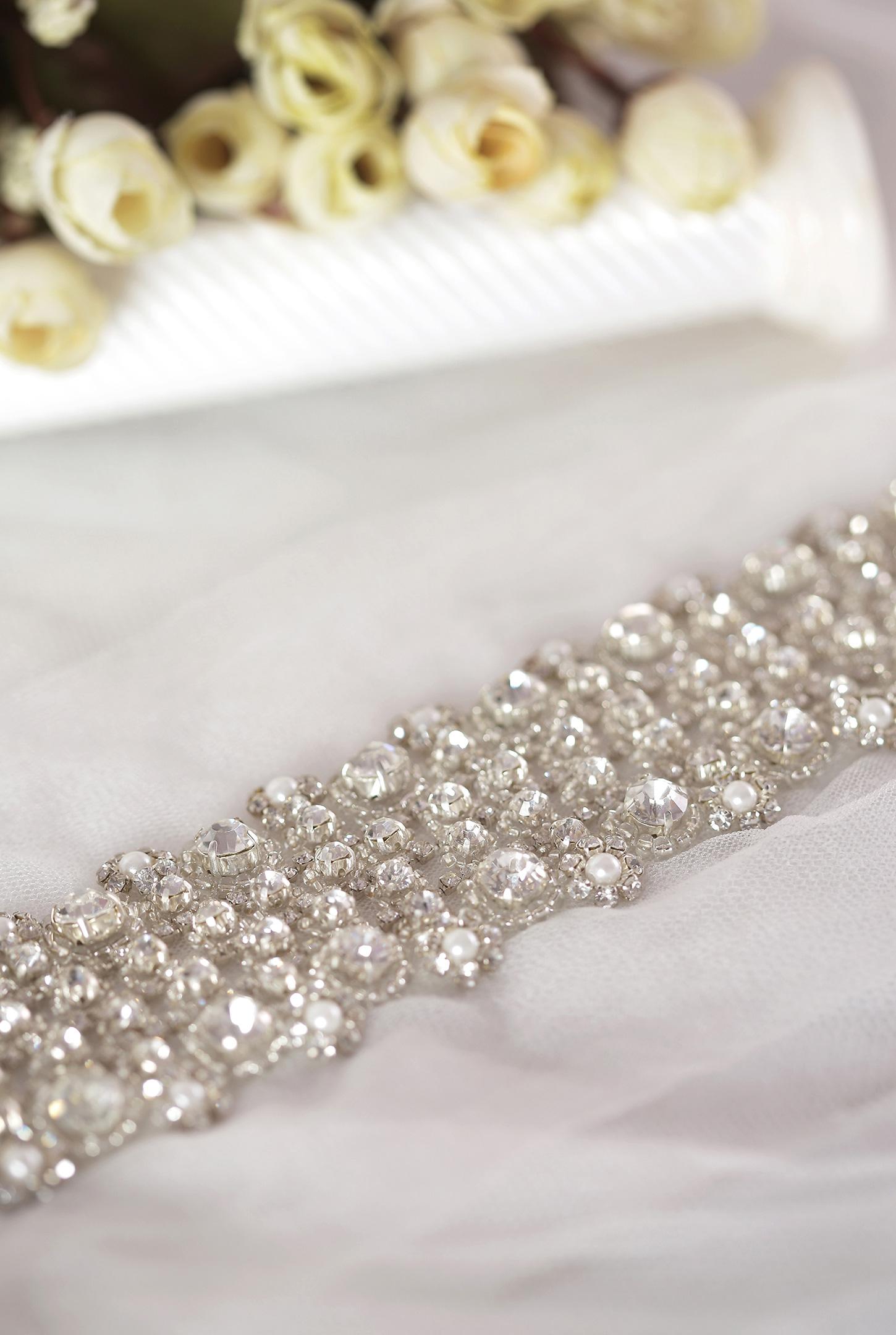 4. Embellishments, beading, crystals, trims like rhinestone and sequin beaded bridal trim,